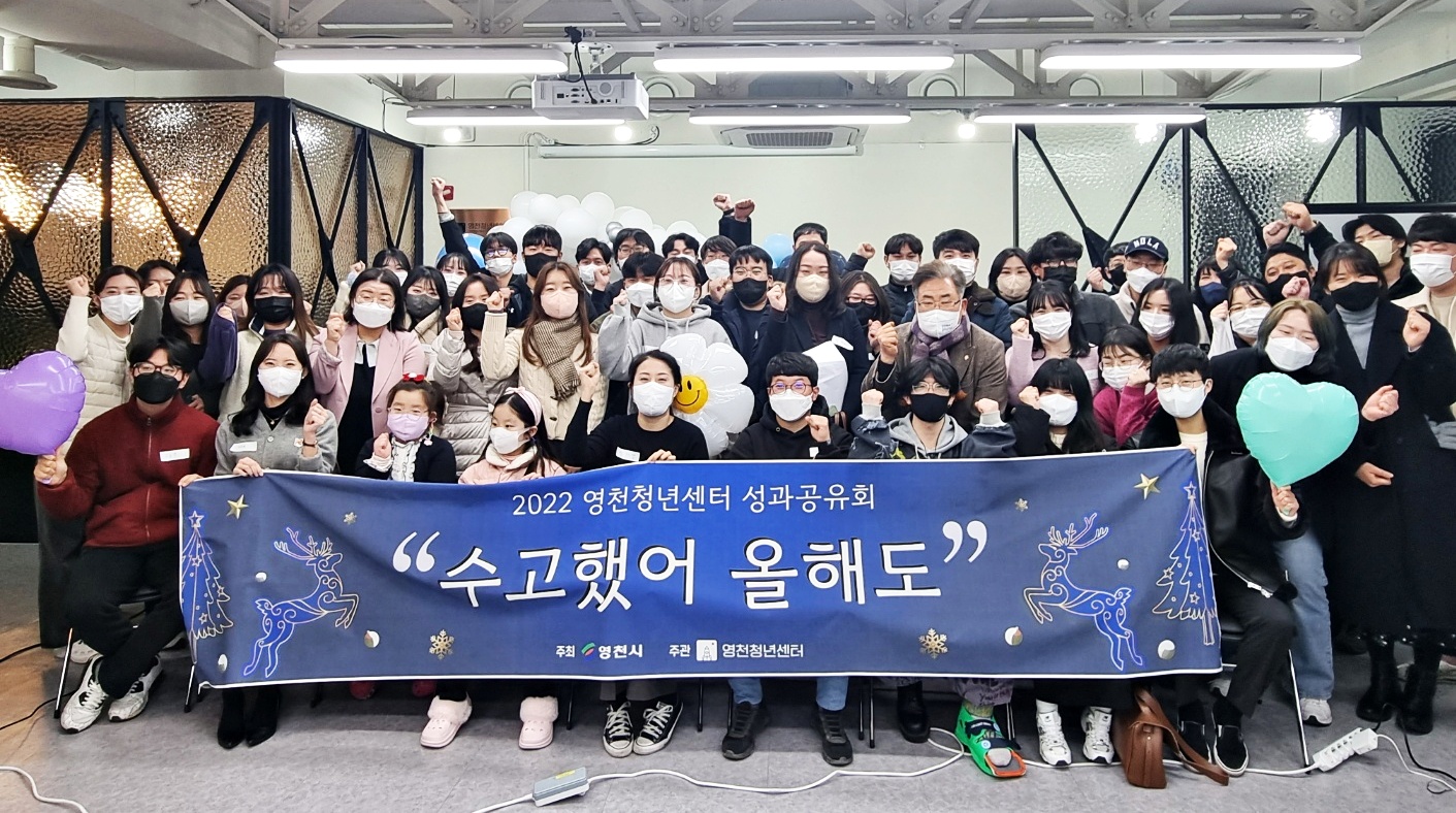 청년센터 성과공유회… 청년네트워크 활성화 영천청년센터 활동 보고 영천청년센터(센터장 강구민)는 12월 28일 프로그램별 참여자 활동성과 공유 및 청년 참여·소통의 장을 마련하기 위해 ‘2022년 영천청년센터 성과공유회’를 개최했다. 이날 성과공유회는 영천청년센터 프로그램에 참여했던 지역청년 40여 명이 참석한 가운데 청년 아티스트들의 축하공연, 2022년도 프로그램 성과발표, 청년소통 교류회, 2023년 프로그램 및 청년정책 홍보 등으로 진행됐다. 특히 별별스쿨, 소셜라이징, 듀얼라이프 등의 청년이 중심이 되어 2022년 진행되었던 프로그램 성과를 서로 공유함으로써 뜻깊은 교류의 시간을 가졌으며 이러한 성과를 바탕으로 내년에도 지역 청년들과 연계한 다양한 프로그램을 진행할 것을 다짐했다. 강구민 영천청년..