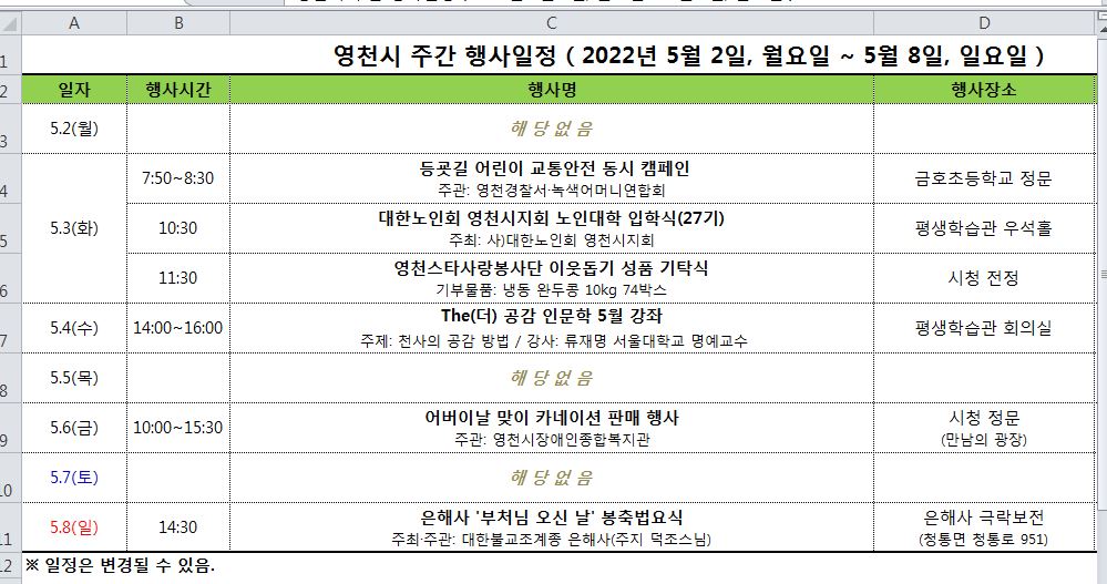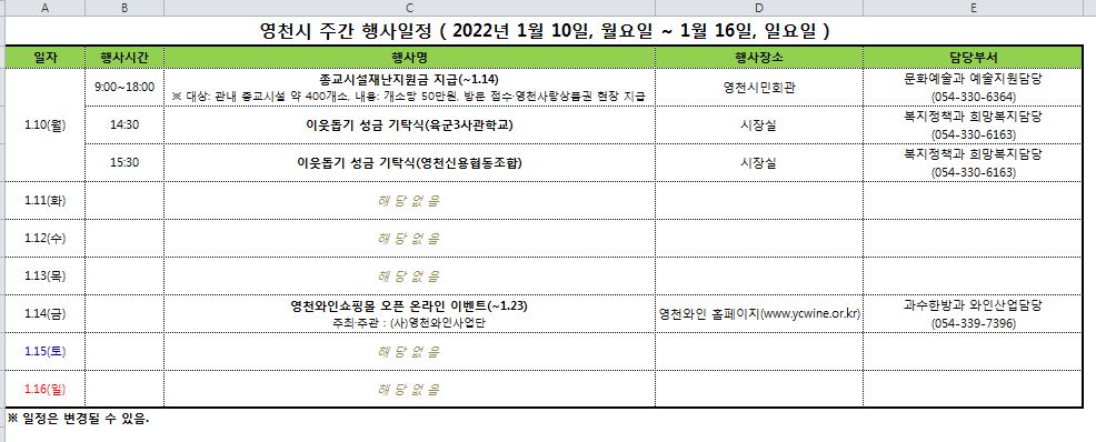 영천시 주간 행사 일정