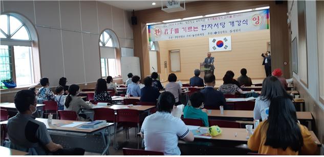 영천향교, 한자서당 개강식… 군자의 지혜와 삶 체험 살아 숨 쉬는 향교사업 일환 영천향교(전교 조영철)는 6월 2일 국학학원 3층에서 수강생 50여명을 대상으로 ‘군자를 기르는 한자서당’ 첫 개강식을 가졌다. 당초 개강이 3월이었으나 코로나확산방지로 6월로 미뤄졌으며 초등학생, 중학생, 일반인 등 다양한 연령대에서 신청해 화기애애한 분위기 속에서 진행됐다. 또한 생활속거리두기 실천으로 서로 간격을 두고 앉거나 보건용 마스크 착용으로 혹시 모를 코로나확산 방지에 모두들 적극 동참한 가운데 수업을 진행했다. 강의는 현재 국학학원에서 한문기초반 강사를 맡고 있는 김정동 선생이 맡아 12월 까지 매주 화요일 17시~19시까지 진행된다. 군자를 기르는 한자서당은 초등학교, 중학교 때 배워야 될 한자습득과 스토리텔..